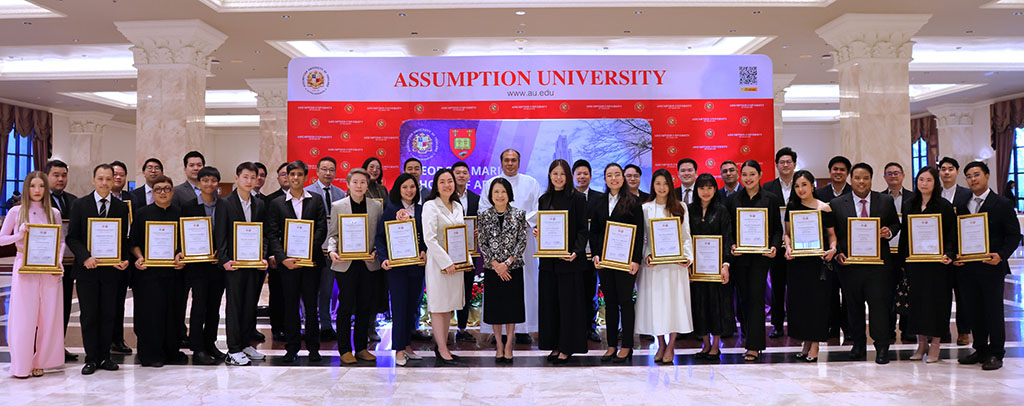 A highlight of the morning was the presentation of the Honorable Alumni Award 2026 and the Distinguished Alumni Award 2026, recognizing alumni whose accomplishments and leadership have brought distinction to the School of Arts and to Assumption University of Thailand.