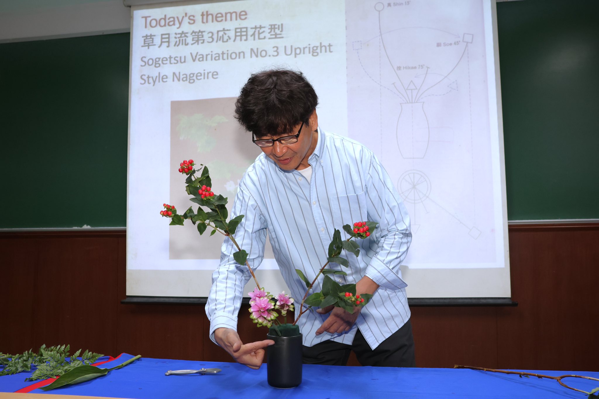 Mr. Sawada is a distinguished Ikebana artist, renowned for creating large-scale displays at Icon Siam and for presenting before national dignitaries. With graceful precision, he guided participants through each step, revealing the artistry of finding balance and harmony within asymmetry.