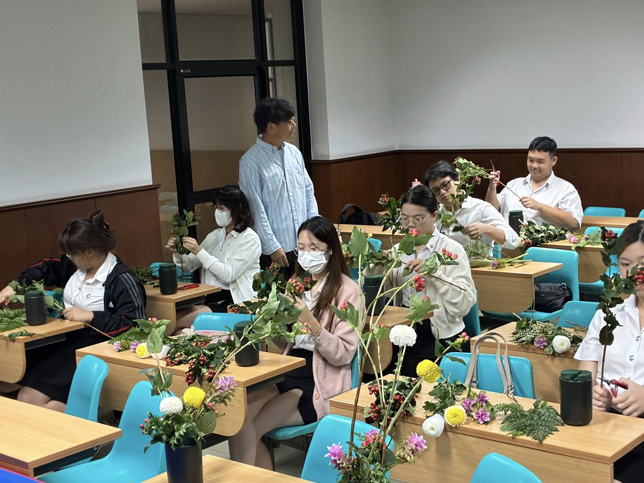 On August 22, 2025, students exploring business opportunities through Japanese culture had the privilege of welcoming Mr. Tadahiro Sawada, former lecturer of the ABAC Department of Business Japanese, for an inspiring Ikebana workshop