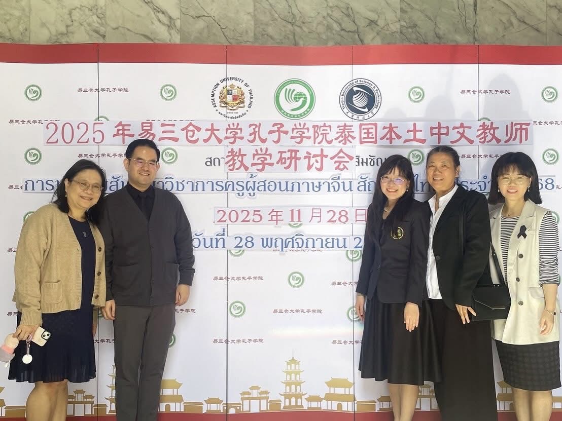 Dr. Triporn Kasempremchit, chairperson of Department of Business Chinese, was honored to serve as a guest speaker at the 2025 Academic Seminar for Thai Chinese Language Teachers, organized by the Confucius Institute at Assumption University on 28 November 2025.